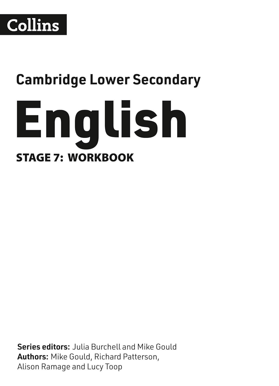 The Collins Cambridge Lower Secondary English series offers a skills-building approach to the Cambridge Lower Secondary English curriculum framework (0861) from 2020. The second edition of the Stage 7 Workbook is designed to help students to consolidate their learning through further practice to secure the skills taught in the Student’s Book.This series is endorsed by Cambridge Assessment International Education to support the new curriculum framework 0861 from 2020.Consolidate and extend students’ learning with engaging practice activities and additional language support for Chapters 1 to 6 of the Student’s Book.The numbered units correspond clearly to the Student’s Book and can be set as homework or used in class for further study. All tasks can be completed individually.As in the Student’s Book each chapter builds from scaffolded activities to more independent and substantial tasks.The write-in format aids revision and keeps learning in one place, allowing teachers to monitor students’ progress.Answers to the Workbook questions are provided in the Stage 7 Teacher’s Guide.