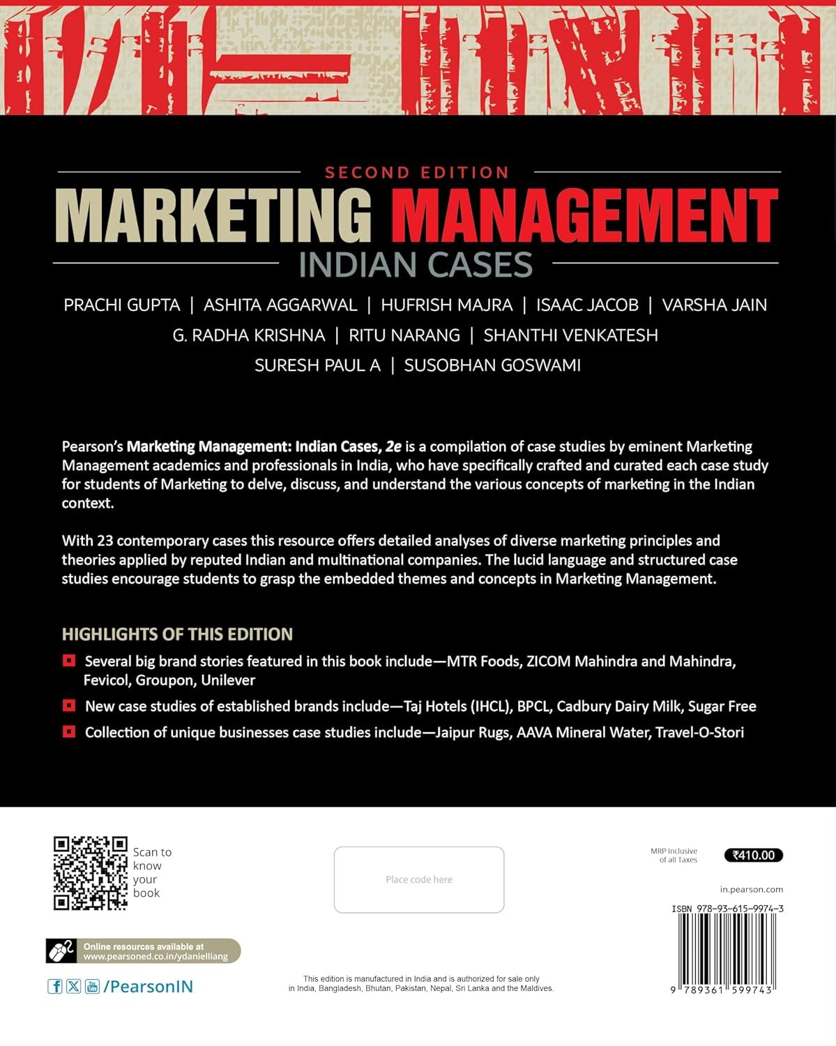 Pearson’s Marketing Management: Indian Cases, 2nd Edition is a compilation of case studies by eminent Marketing Management academics and practitioners in India, who have specifically crafted and curated each case study for students of Marketing to delve, discuss, and understand the various concepts of marketing in the Indian context.