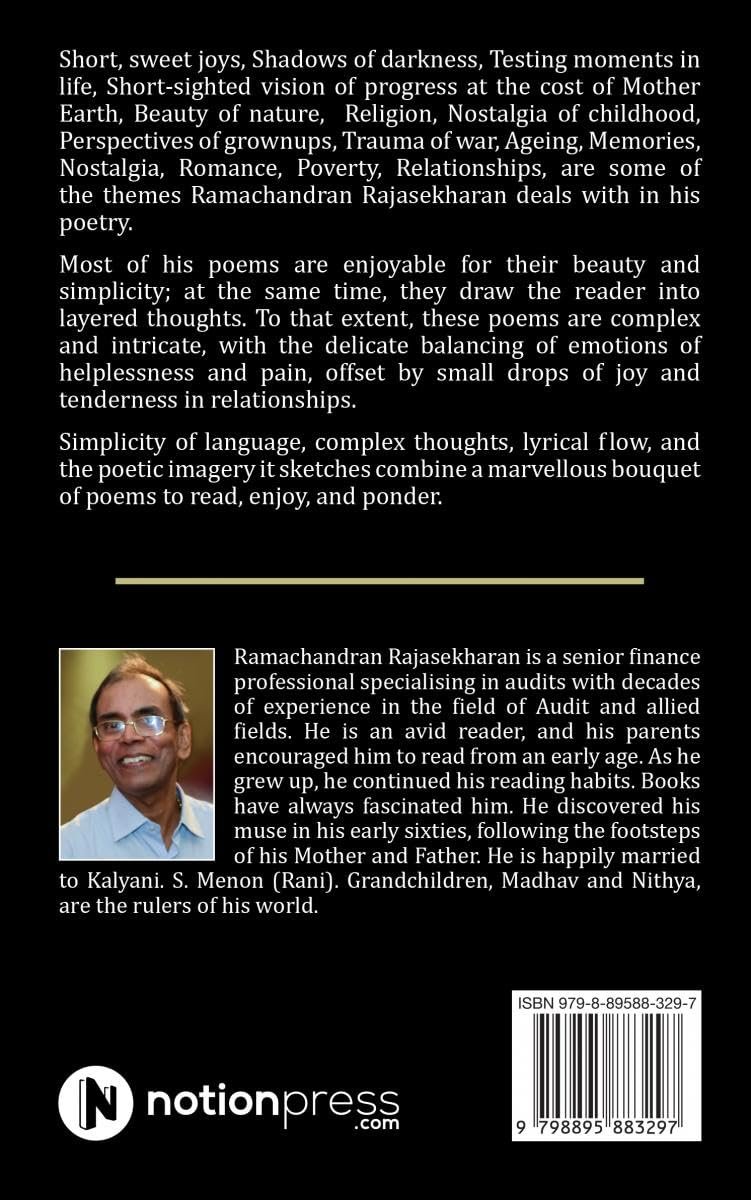 Simplicity of language, complex thoughts, lyrical flow, and the poetic imagery it sketches combine a marvellous bouquet of poems to read, enjoy, and ponder.