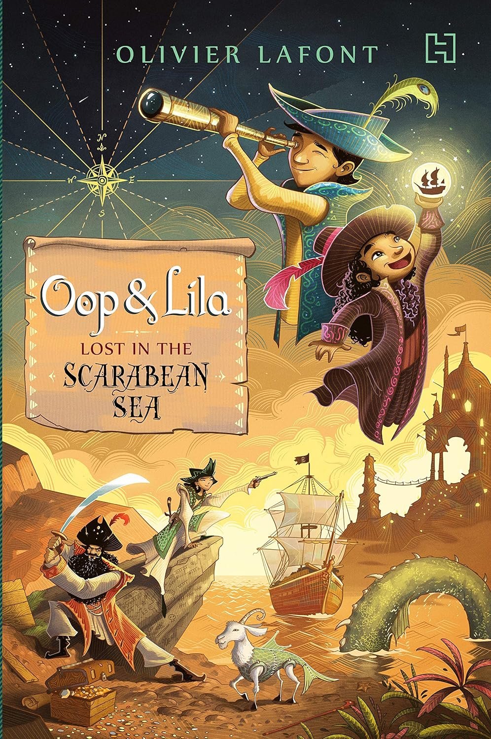 The Scarabean Sea. Ruled by titanic sea scarabs that hunt whales and ships. Claimed by the all-conquering Brutish Empire. Home to a hundred proud kingdoms yearning for freedom. And haunt of dreaded pirates. A world not too different from our own… For Oop nothing is worse than babysitting his little sister, Lila, at the Mega Mela. And where does she take him? To some weird fake fakir. Things take a frightening turn, however, when they discover the fakir’s bag of 99 candies, and each one grants one wish. Transported by wish candy to the Scarabean Sea in the middle of a midnight raid on the Brutish Empire’s treasures, Oop and Lila end up hunted by the fakir Tattoo, who covets the wish candies and will stop at nothing to get them back. But Oop and Lila have allies: the fearsome Captain Angry and his mismatched crew of cut-throat pirates!
