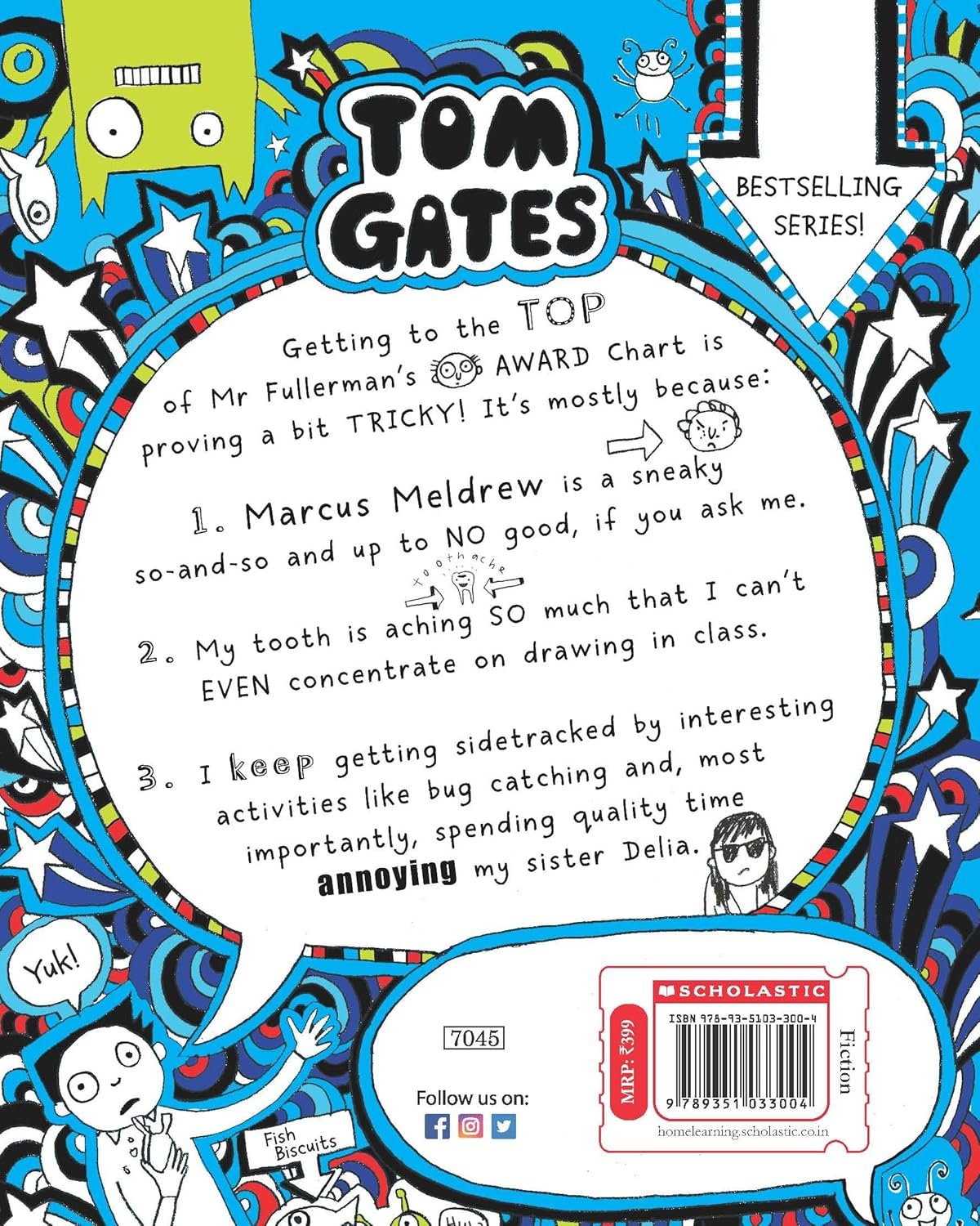 No school for two whole weeks leaves Tom with heaps of time for the important things in life. Yeah! He can forget all about lessons and the irritating Marcus meldrew, and save his energy for good stuff! Stuff like: inventing new ways to annoy his sister Delia. (So many). band practice for the zombies – rock stars in the making! Watching TV and eating caramel wafers; eating caramel wafers and watching TV. Excellent! But clouds are gathering on the horizon in the form of Tom’s weirdo big sister Delia. And when trouble collides with his brilliant plans, he’ll need all his excellent excuses… Crammed with scribbles, doodles, stories and sniggers, this hysterical journal brings you more manic mayhem from the crazy world of Tom Gates. Ha Ha Ha!.